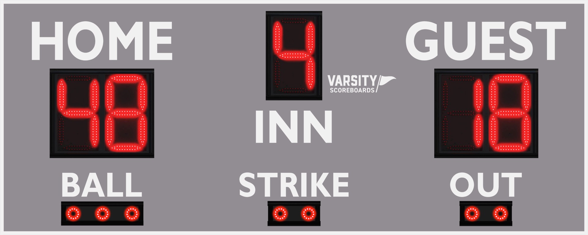 For the base price, you will receive the scoreboard, standard controller, and your choice of premier powder-coat color (please specify background color, lettering and trim). Please ask your Varsity Scoreboards sales representative for more information regarding popular options that are available for an extra charge (some examples include: wireless remote control, conversion kits, custom powder-coat colors).