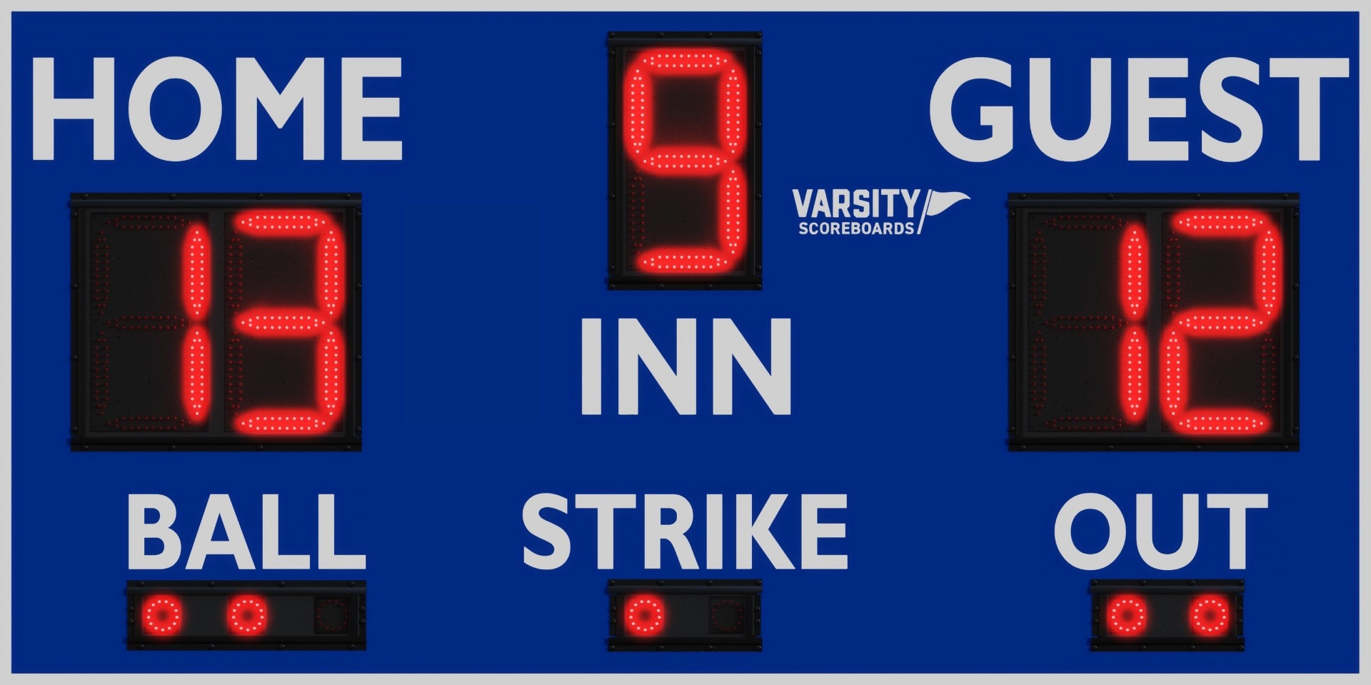 For the base price, you will receive the scoreboard, standard controller, and your choice of premier powder-coat color (please specify background color, lettering and trim). Please ask your Varsity Scoreboards sales representative for more information regarding popular options that are available for an extra charge (some examples include: wireless remote control, conversion kits, custom powder-coat colors).