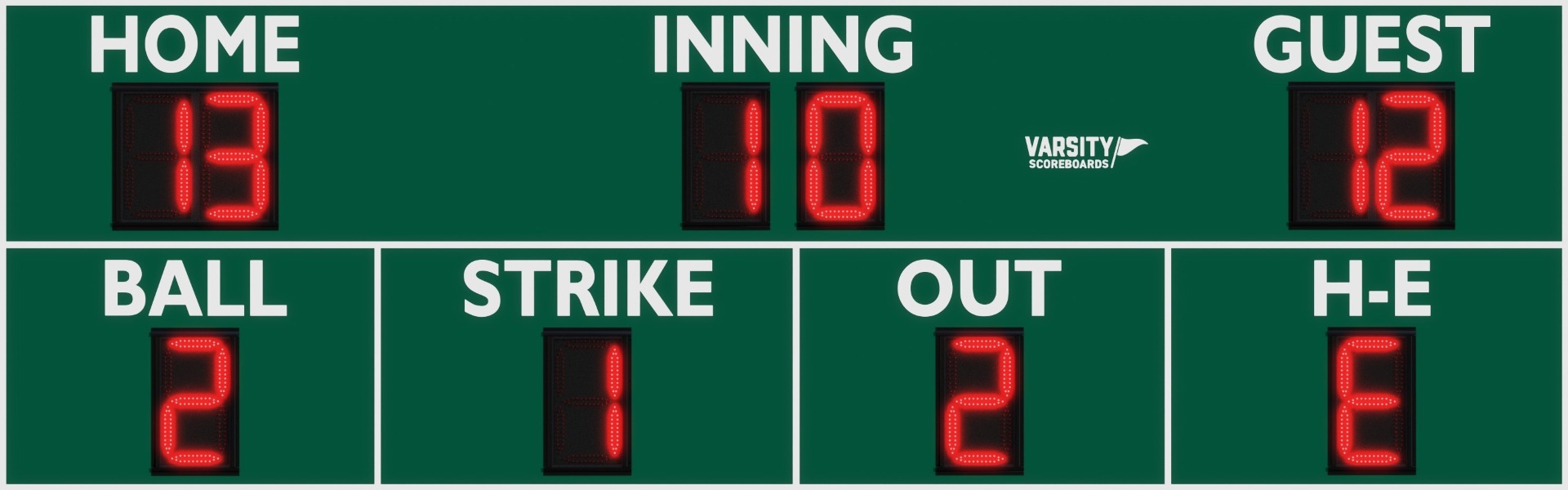 For the base price, you will receive the scoreboard, standard controller, and your choice of premier powder-coat color (please specify background color, lettering and trim). Please ask your Varsity Scoreboards sales representative for more information regarding popular options that are available for an extra charge (some examples include: wireless remote control, conversion kits, custom powder-coat colors).