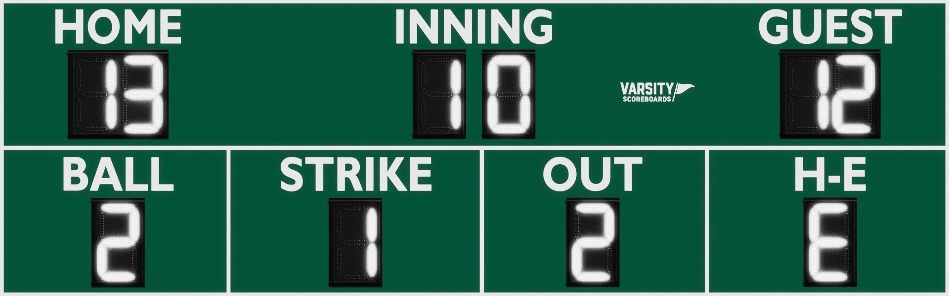 The 3388 builds on the game functions of our other baseball scoreboards, but in a stunning, 16-foot wide cabinet