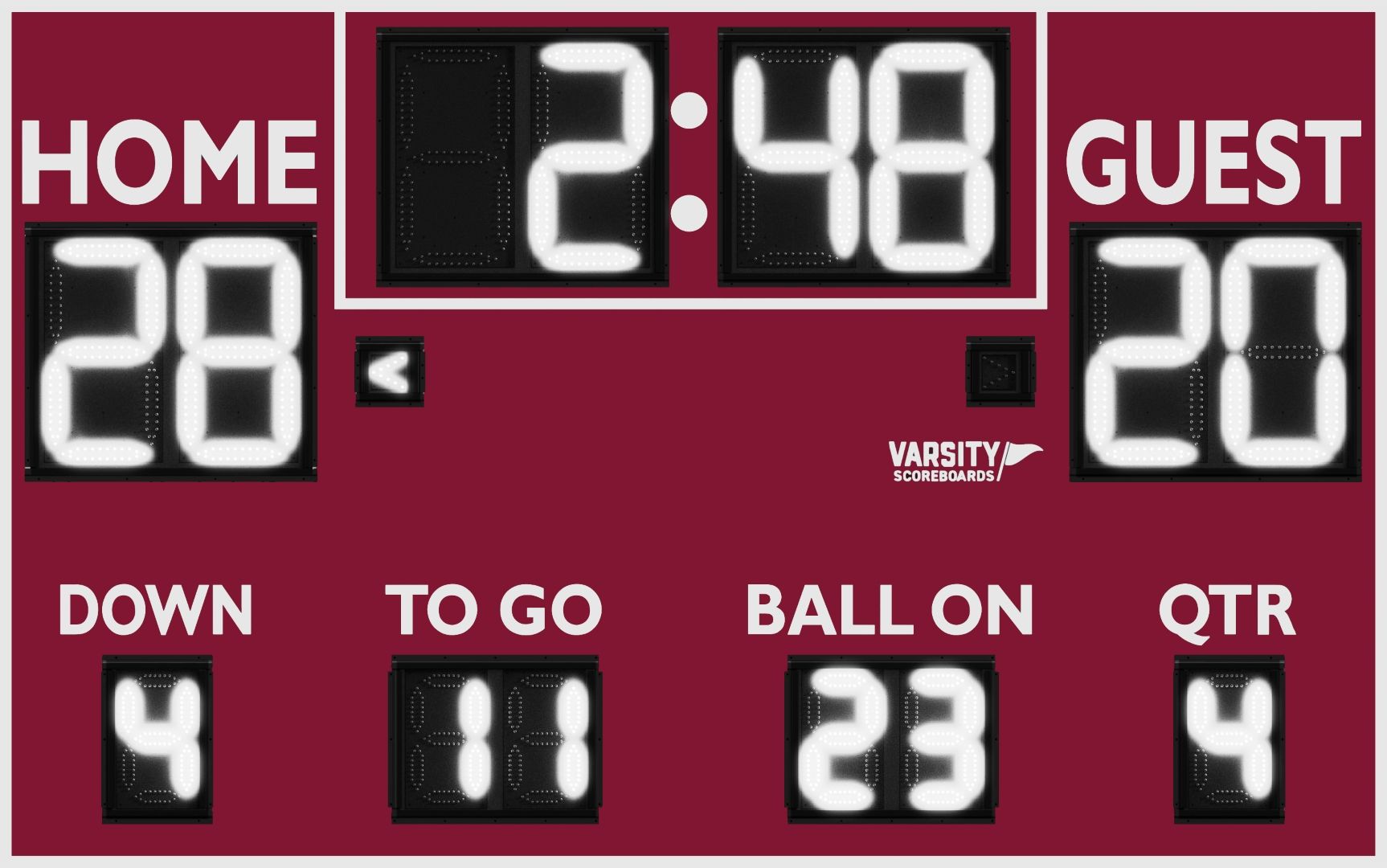 In the words of the great Football Coach Vince Lombardi, “If winning isn’t important, then why is that scoreboard up there?” At Varsity Scoreboards, we wholeheartedly agree that scorekeeping matters in football. It’s not just about offense and defense; it’s about tracking tackles, first downs, field goals, and more. That’s why we offer a range of football scoreboards designed to keep up with all the important information on the field.