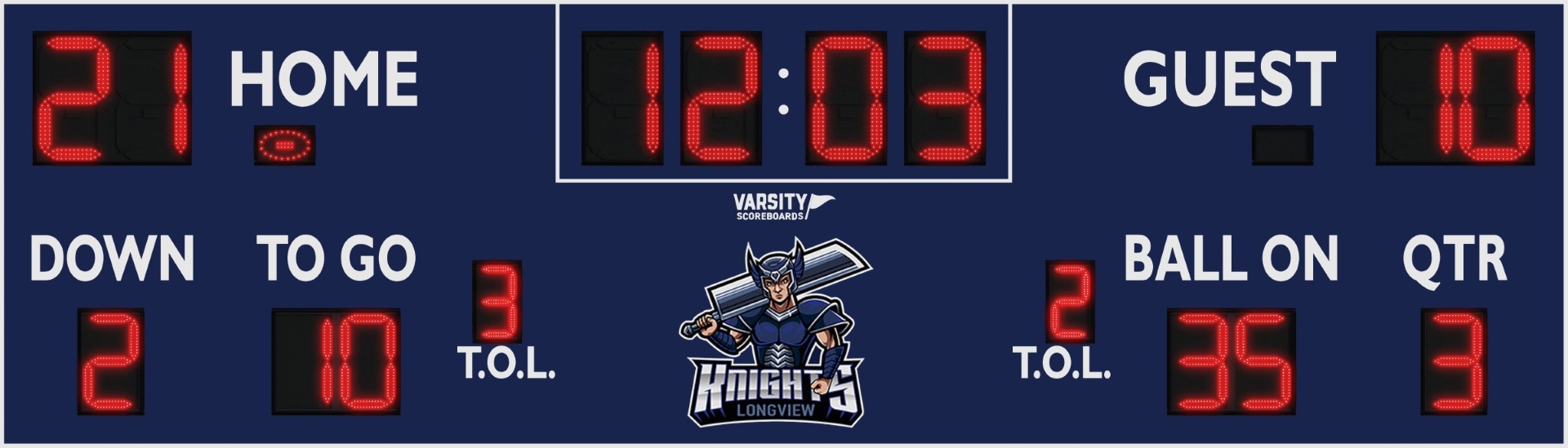 For the base price, you will receive the scoreboard, standard controller, and your choice of premier powder-coat color (please specify background color, lettering and trim). Please ask your Varsity Scoreboards sales representative for more information regarding popular options that are available for an extra charge (some examples include: wireless remote control, conversion kits, custom powder-coat colors).