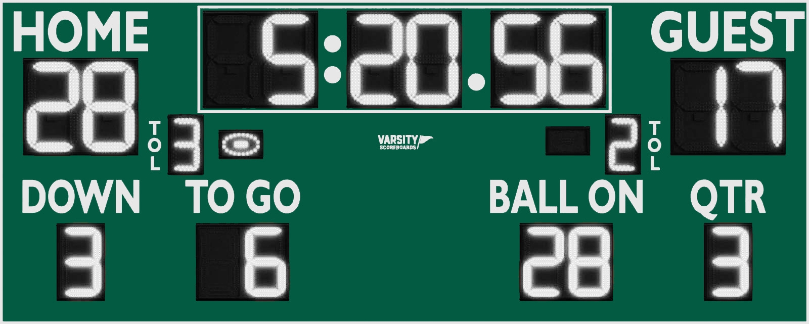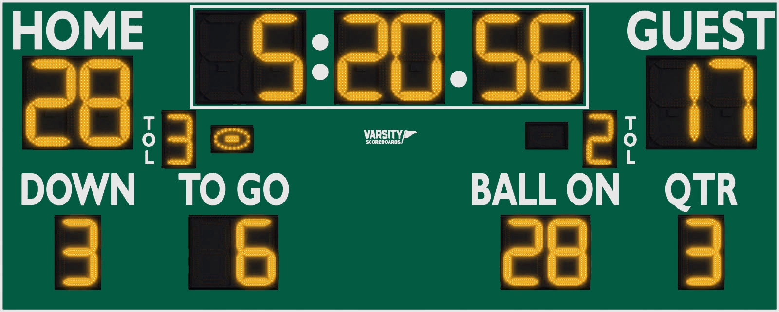 For the base price, you will receive the scoreboard, standard controller, and your choice of premier powder-coat color (please specify background color, lettering and trim). Please ask your Varsity Scoreboards sales representative for more information regarding popular options that are available for an extra charge (some examples include: wireless remote control, conversion kits, custom powder-coat colors).