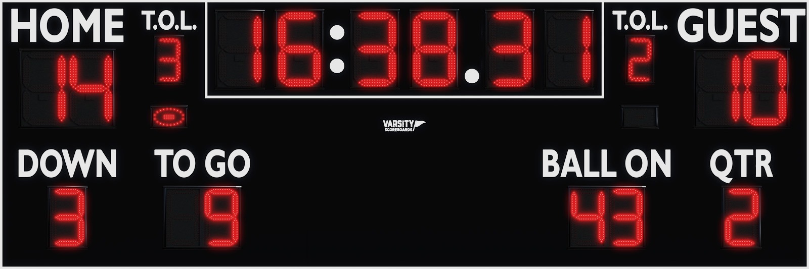 For the base price, you will receive the scoreboard, standard controller, and your choice of premier powder-coat color (please specify background color, lettering and trim). Please ask your Varsity Scoreboards sales representative for more information regarding popular options that are available for an extra charge (some examples include: wireless remote control, conversion kits, custom powder-coat colors).